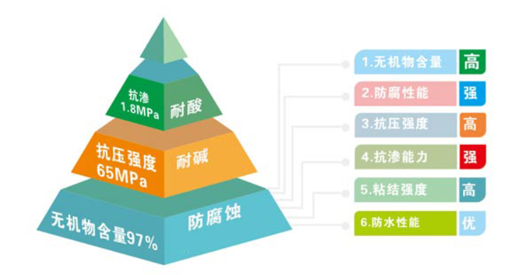 特点:具有耐酸碱防腐蚀、防水等级高、抗渗压力达到1.8Mpa以上的特点。